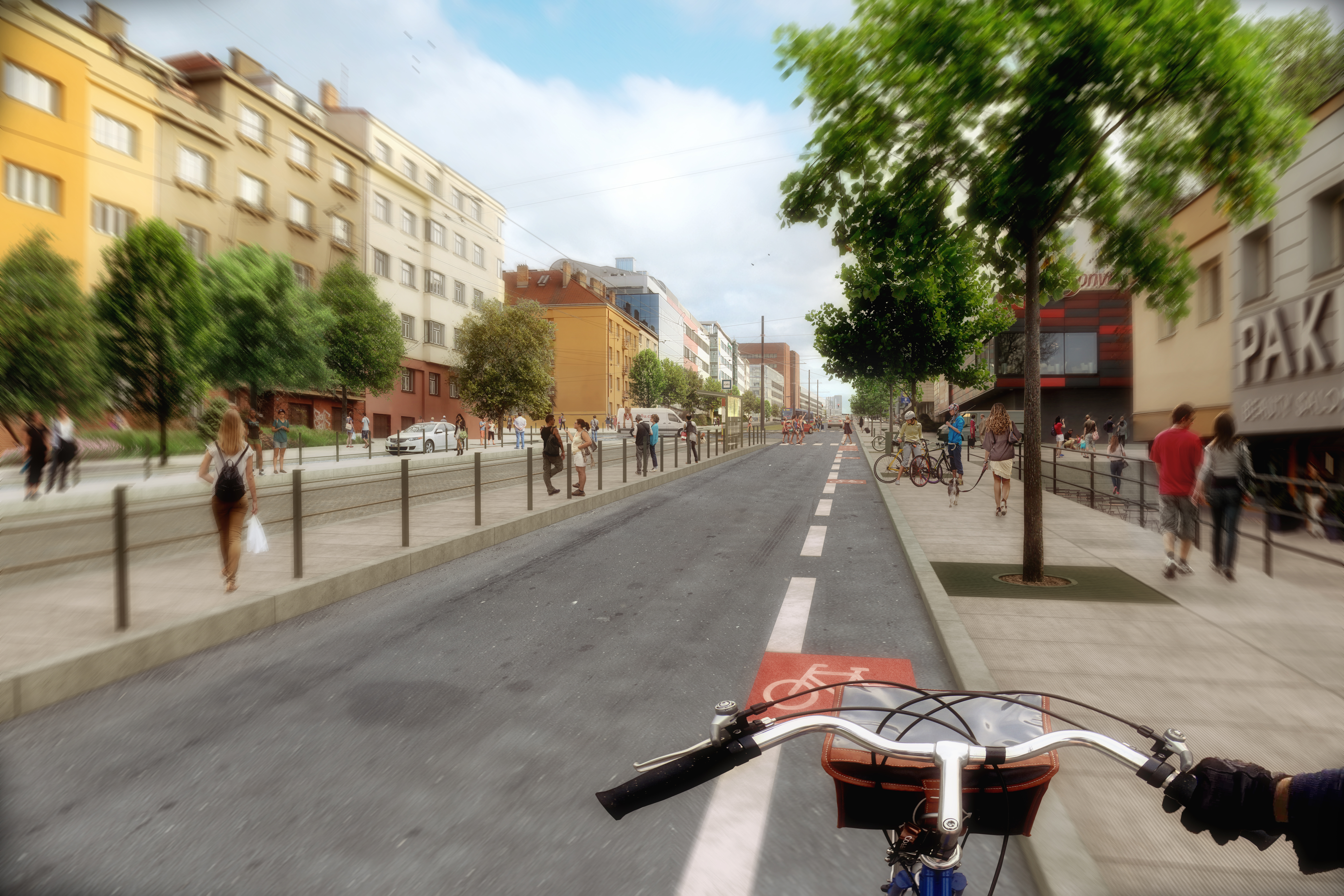 - The load caused by the grade separated crossing of the North-South arterial road with Táborská and Na Veselí streets will be dealt with by creating a level connection of all streets, which will help bridge and unify two parts of the city and revitalize the nearby street level.