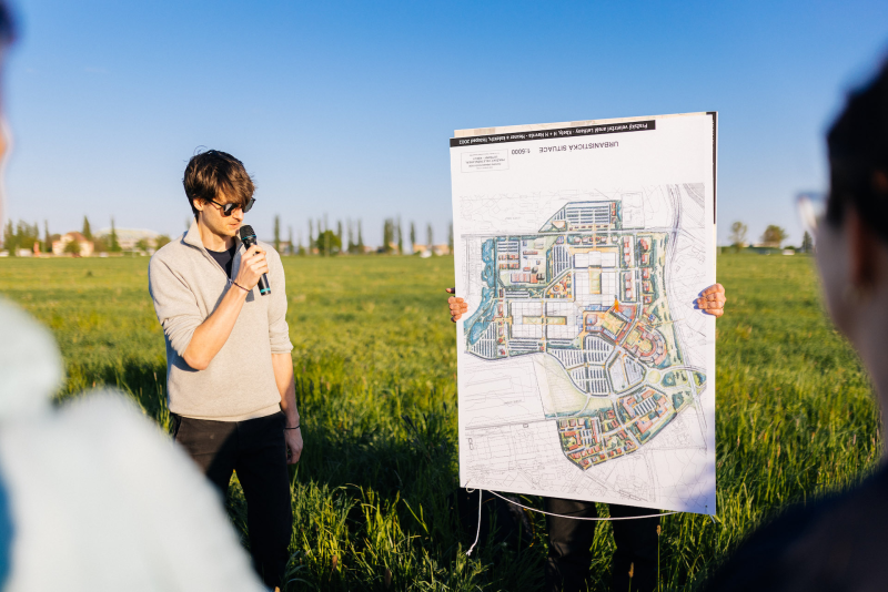 The landscape concept for the new district builds on its location within the flat, agriculturally managed terrain at the edge of the city and the Polabí region. The local natural conditions, particularly the terrain’s morphology, are well suited for development. At the same time, the district must respond sensitively to the local landscape character, its urban context, and the challenges posed by global climate change. Other important considerations include spatial orientation within the area and landscape permeability.