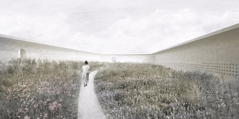 - Vznik asketicky jednoduchého ortogonálního prostoru členěného na tři části – vstupní prostor, zázemí a prostor kolumbária se vsypovou loukou