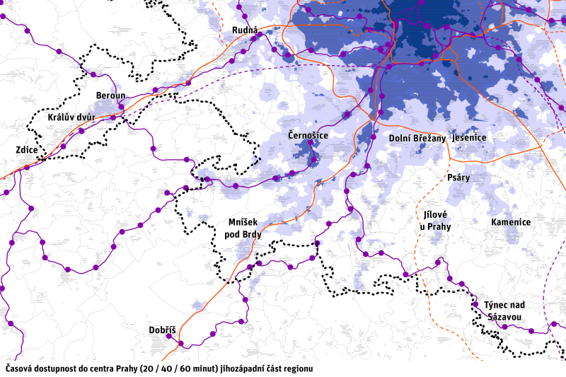 Studie sice potvrzuje, že kvůli uspořádání středních Čech není účelné zabývat se myšlenkou vlakotramvaje. Zároveň však identifikuje oblasti, které si zaslouží podrobnější prověření obsluhy veřejnou dopravou. Jedná se například o oblast východně od Prahy v návaznosti na realizaci terminálu VRT v Nehvizdech nebo oblasti Dolnobřežanska či okolí Horoměřic.