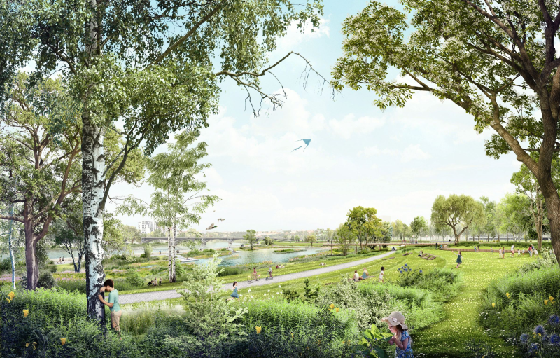 Prioritou je zajistit takový prostor pro řeku, který ochrání město před povodněmi a který vytvoří biologicky rozmanité prostředí. V rámci parku vzniknou velkorysé vodní plochy. Tento ekosystém bude nejen přínosem pro místní volně žijící živočichy a rostliny, ale stane se také ceněným místem posilujícím společenský život v srdci Prahy pro současné i budoucí generace.