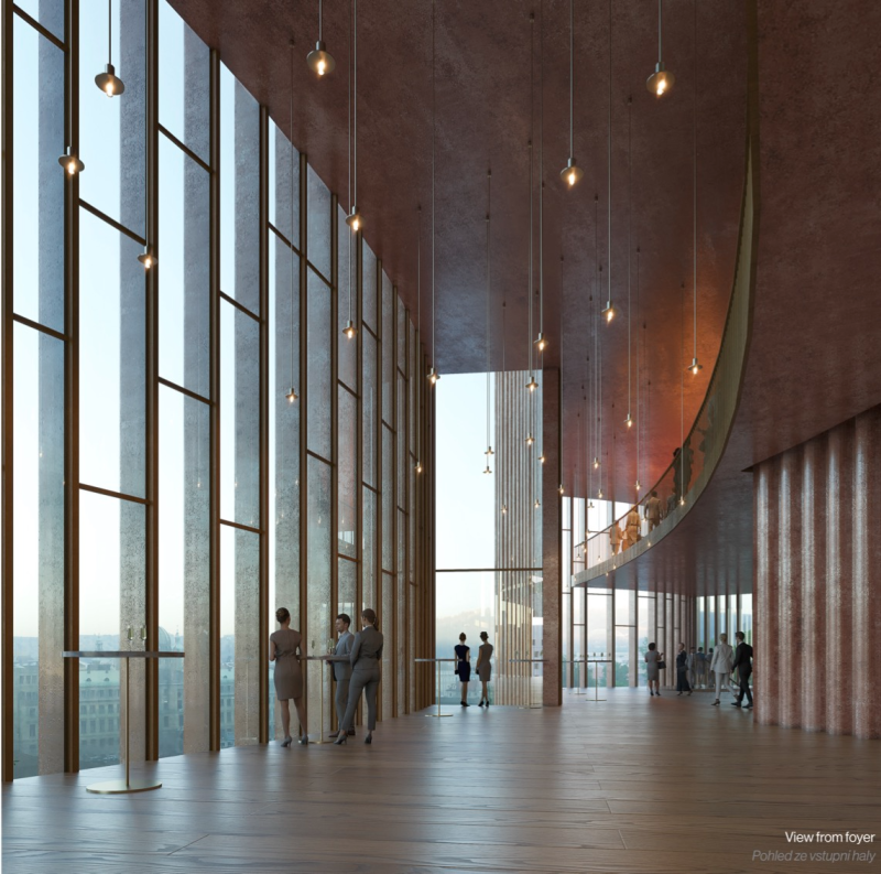 Pět bijících srdcí filharmonie tluče do svého okolí, vítají všechny kolemjdoucí a posílají je dobře naladěné dále městem. Život v parku je podporován extrovertními provozy v parteru. Koncept návrhu je inspirován vlněním hudby a tvary akustických stěn – „reflektorů“ zušlechťujících hudbu. Filharmonie je pojata jako „dokonalý nástroj“ architektury a krajiny, který vstřebává esenci hudby a předává ji návštěvníkům na všech úrovních.  Okolní sousedství jsou přirozeně napojena na řešené území, kde trasy pokračují směrem k břehům Vltavy budovou a parkem.