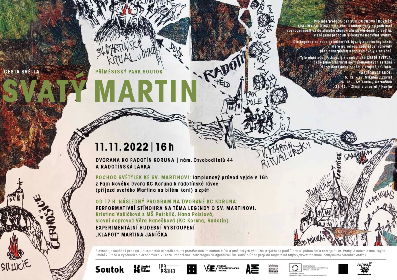 Lampionový průvodu vyrazil z dvorany od Fajnové kavárny, u radotínské lávky účastníci průvodu přivítali Martina na bílém koni a společně se vrátili zpět k Fajnové kavárně. Zde se podíleli na stínohře „Legenda sv. Martina“.