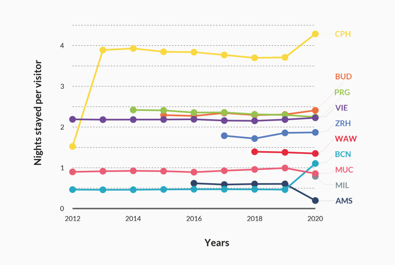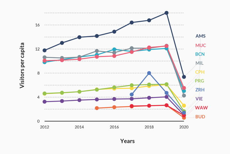 *Zdroj: Eurostat, Prague City Tourism, Stadt Wien, Munich Tourist Board, WarsawTour, KSH, DST, Ajuntament de Barcelona, BFS, Amsterdam.org, Istat