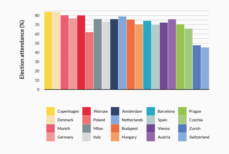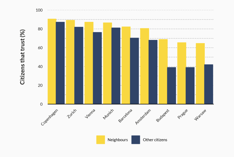 V roce 2019 důvěřovalo vlastním sousedům, ale i ostatním obyvatelům města, nejméně lidí v Praze, Varšavě a Budapešti.