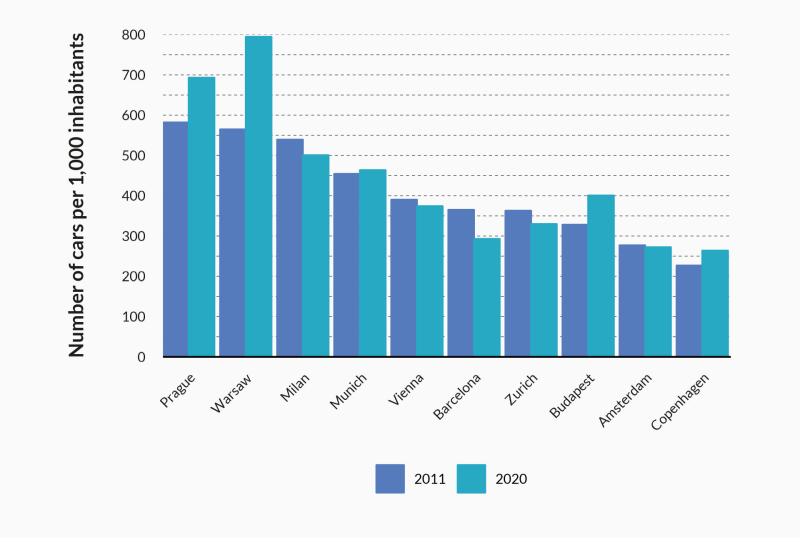 Údaje jsou za roky 2011 (Varšava 2010), 2020.