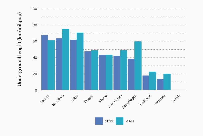 *Zdroj: TSK Praha, wien.gv.at, stadt.muenchen.de, Statistical Office in Warszawa, static.bkv.hu, Statistic Denmark, ajuntament.barcelona.cat/estadistica – Departament d'Estadística i Difusió de Dades – Ajuntament de Barcelona, data.amsterdam.nl, sisi.comune.milano.it